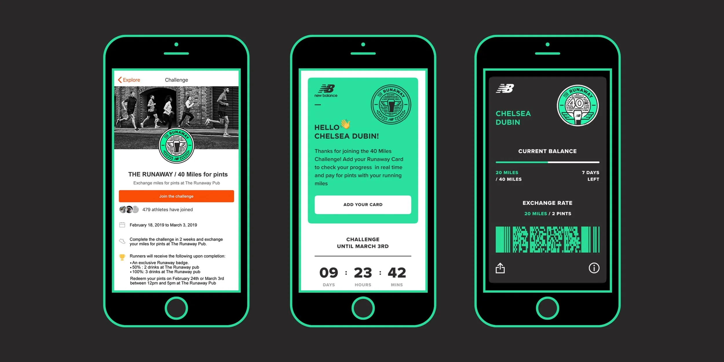 Customers tracked their miles with the Strava fitness app and converted to currency via the “Runaway Card” added to an Apple or Google mobile wallet.